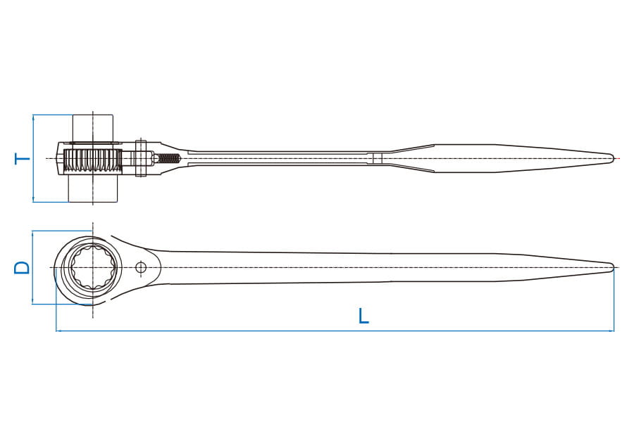 - funkcja grzechotki i nasadki- 32 zęby- przełącznik kierunku pracy grzechotki w kluczu. Wymiary ( mm ) :T - 63 D - 61,5 L - 402. ZALETY klucza :- wykonany z hartowanej stali, z mechanizmem zapadkowym, powierzchnia klucza oksydowana na czarno- sprawdza się w trudnych pracach montażowych lub rozbiórkowych- wyjątkowo odporny na zanieczyszczenia i wpływ warunków zewnętrznych- bardzo długie ramię ułatwia odkręcanie trudnych, zardzewiałych połączeń, a zaostrzona końcówka służy do podważania i rozsuwania demontowanych elementów zastępując pracę małej łyżki lub łomu- przełącznik grzechotki pozwalający na zmianę kierunku pracy bez zdejmowania rękawic- otwór w rękojeści przeznaczony do przypięcia klucza i zabezpieczenie przy pracy na wysokości
