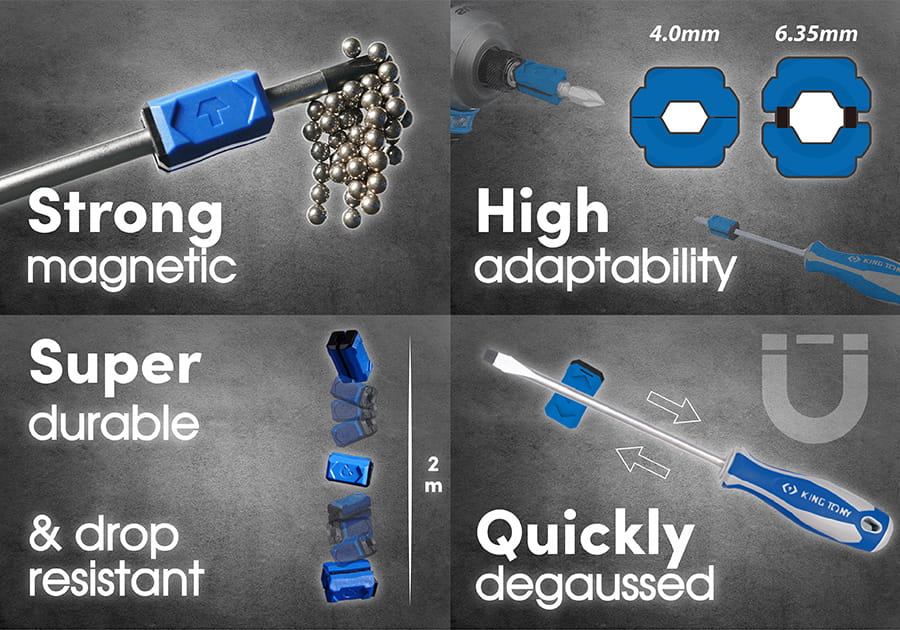 Magnetyzer King Tony do bitów 1/4" długich i wkrętaków, do okrągłych kształtów o średnicy w zakresie 4~6.35mm.