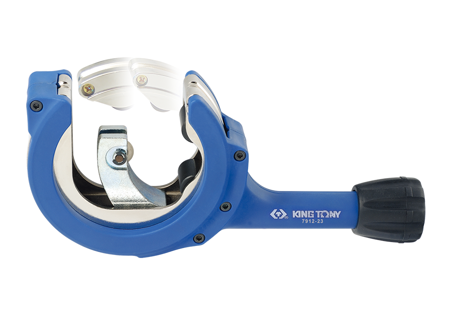 Obcinacz do rur King Tony. Średnica rury do 28-67mm, grubość do 3 mm (do 2mm dla stali nierdzewnej). Regulacja nacisku w rączce. Zapasowe ostrze schowane w rękojeści.