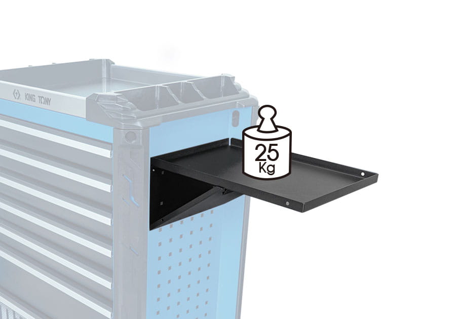 Składana półka do wózków warsztatowych serii 87SQ King Tony. Wymiary: 98 x 280 x 179 mm. Nośność: 25 kg.