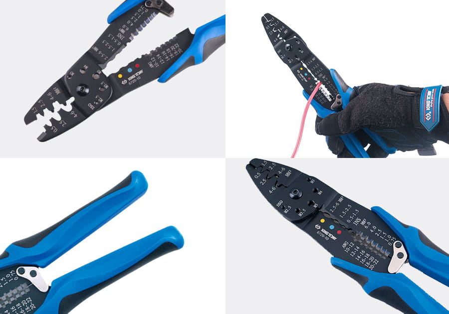 Szczypce do zaciskania izolowanych i nieizolowanych końcówek kablowych otwartych i zamkniętych King Tony, długość 250mm.