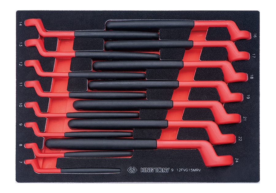 ZESTAW KLUCZY OCZKOWYCH ODGIĘTYCH VDE 7-24 mm WKŁAD EVA DO WÓZKA King Tony 9-12FVG15MRV
