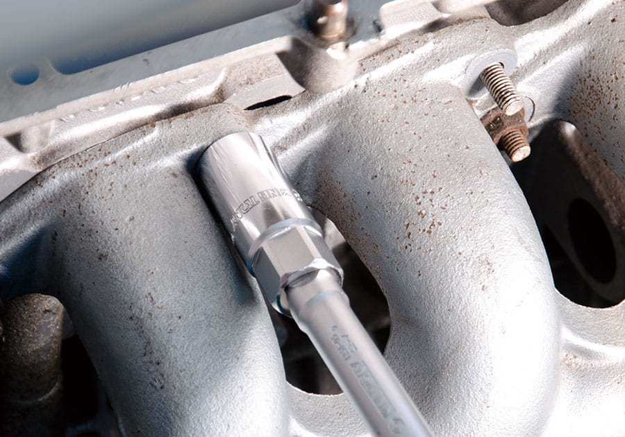 Zestaw wykrętaków rolkowych (nasadek przelotowych) do szpilek - prętów gwintowanych w rozmiarach M6, M8, M10 i M12 w plastikowym pudełku. Do stosowania z pokrętłami 1/2", możliwość zastosowania klucza 21 mm.