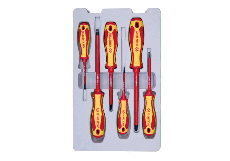 ZESTAW WKRĘTAKÓW IZOLOWANYCH 6 cz. KRZYŻAK PH No.0. No.2. No.3. PŁASKIE 3 x 75. 4 x 100. 6.5 x 150 King Tony 30606MR